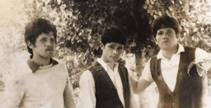 Adem Jashari gjendet në të majtë, Ramadan Kaqkini në të djathtë dhe në mes gjendet një shok i përbashkët i tyre.