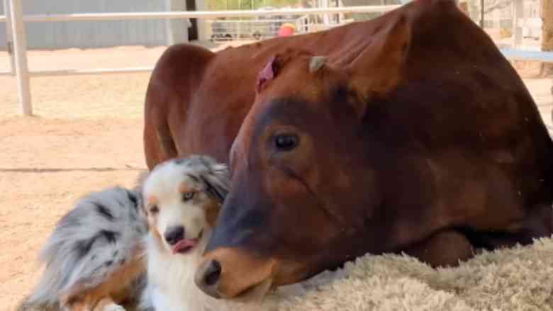 Ky dem me peshë mbi 450 kilogramë, duhet të shtrihet në tokë në mënyrë që të mund të luajë i sigurt me qenin.
