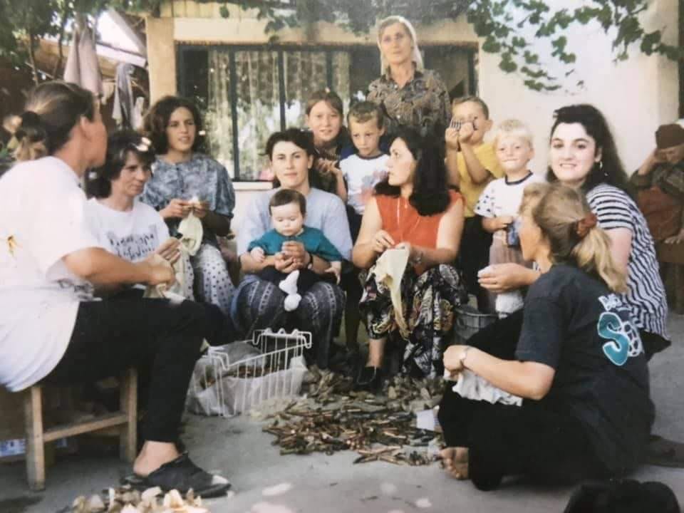 Në këtë fotografi shihen gra dhe vajza të cilat pastrojnë municionin e Ushtrisë Çlirimtare të Kosovës.