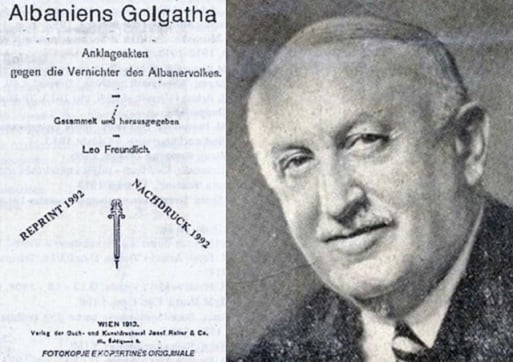 Shkrimtari hebre Leo Freundlih me banim në Vjenë, është njëri ndër intelektualët e pakët që mbajti koleksionin e të gjitha gazetave të mëdha të kohës që tregonin mbi shfarosjen e së paku një gjysëm milioni shqiptarë nga serbët në vitet 1912-1913. I revoltuar ai ngriti zërin e tij kundër asaj që ai e qujati “Golgotha Shqiptare”, e që u shoqërua nga masakra të atij tipi që nuk i kishte njohur Bota më parë.
