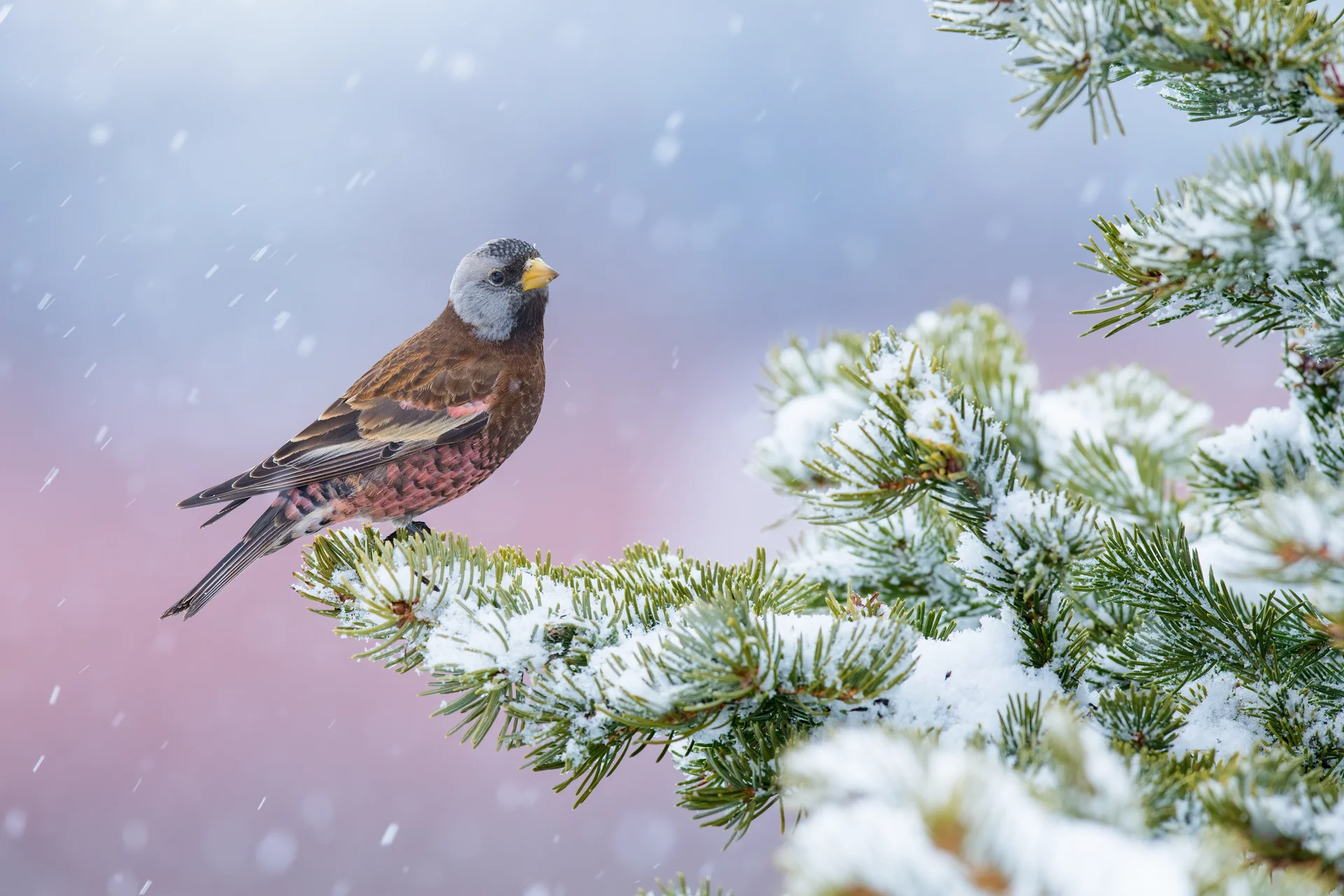 Fluturim elegant qiellor- Në fund të dimrit, mrekullohem me baletin ajror të zogjve të kopshtit që vijnë për të vizituar pemët e mia dhe për të përfituar nga farat që nxjerr për ta. Misioni ishte sfidues dhe këto modele të vogla të djallëzuara ndiqnin kërcimin e tyre. U kërkuan qindra shkrepje përpara se të kapja momentin e përsosur, i cili portretizonte magjinë kalimtare të natyrës në dimër.