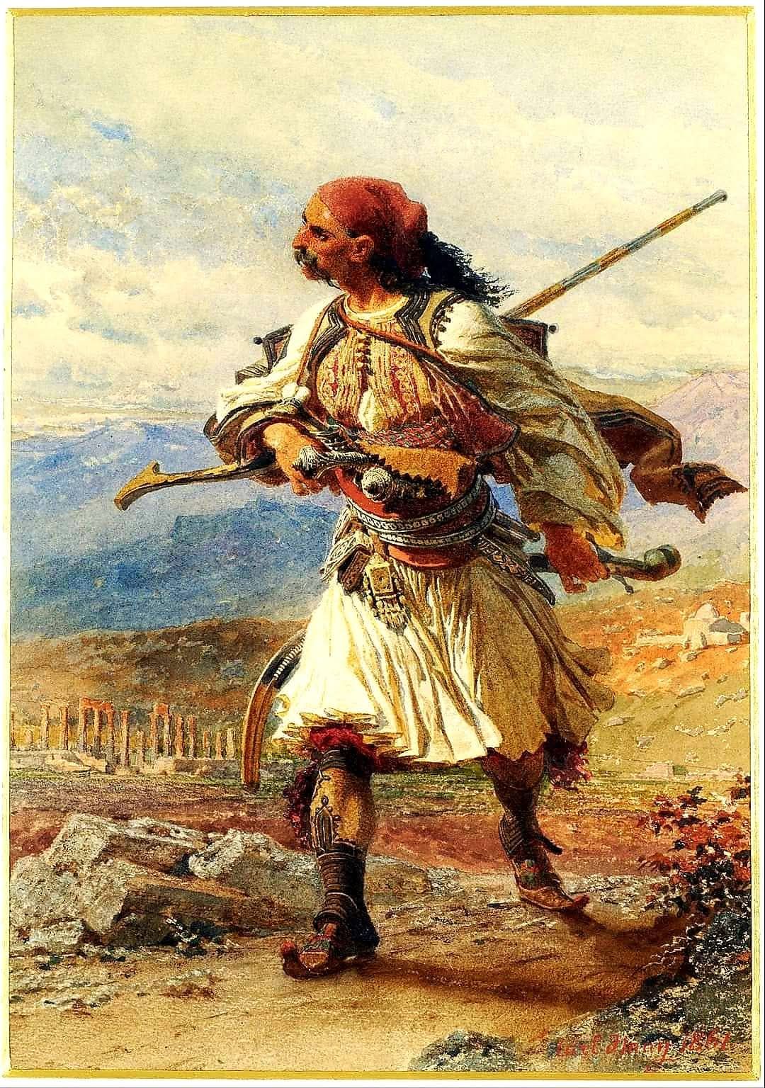 Në pikturën “Luftëtar shqiptar” me fustanellë, në Greqi, 1830, realizuar në vitin 1861 nga piktori bavarez Carl Haag (1820–1915), arti shndërrohet në një formë dëshmie historike, ku figura individuale tejkalon vetveten për t’u bërë bartëse e një identiteti kolektiv. Vepra, e njohur herë si “Luftëtari grek” e herë si “Luftëtari shqiptar”, pasqyron jo një paqartësi ikonografike të artistit, por një realitet historik kompleks, ku kufijtë etnikë, kulturorë dhe politikë në Ballkanin osman ishin shpesh të lëvizshëm dhe të ndërthurur.