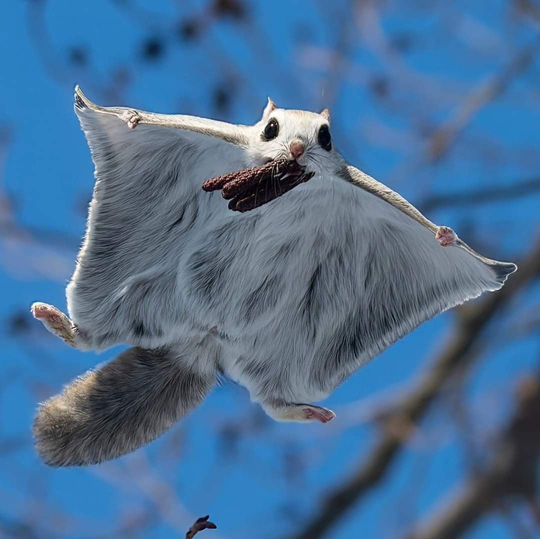 Trupi i tij hapet si një parashutë e vogël natyrore. Lëkura e hollë që lidh këmbët e përparme me ato të pasmet – e quajtur patagium – shtrihet dhe e mban pezull në ajër. Ai nuk fluturon si zogjtë; ai rrëshqet, duke prerë ajrin në heshtje, derisa prek trungun tjetër me një përplasje të lehtë, por të suksesshme.