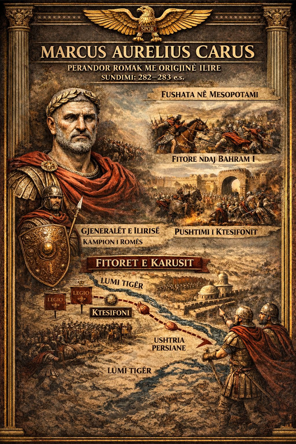 KARUSI, PERANDORI ME ORIGJINË ILIRE, GJENERALI I SHQUAR I ROMËS, QË PUSHTOI PERSINË DUKE FITUAR BETEJAT NË MESOPOTAMI.