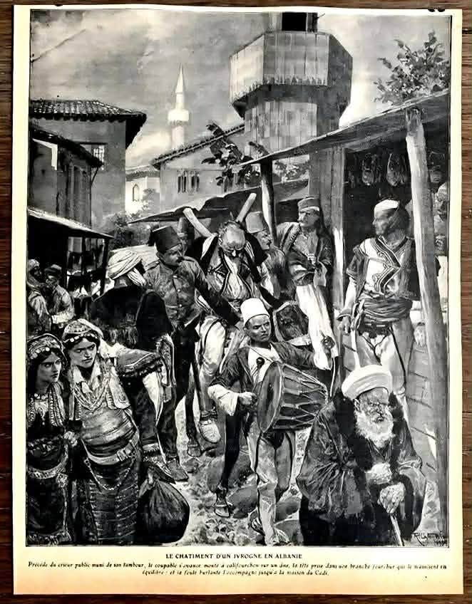 Ilustrimi me titullin frëng “LE CHÂTIMENT D’UN IVROGNE EN ALBANIE” nuk është thjesht një skenë folklorike ekzotike për syrin perëndimor;…